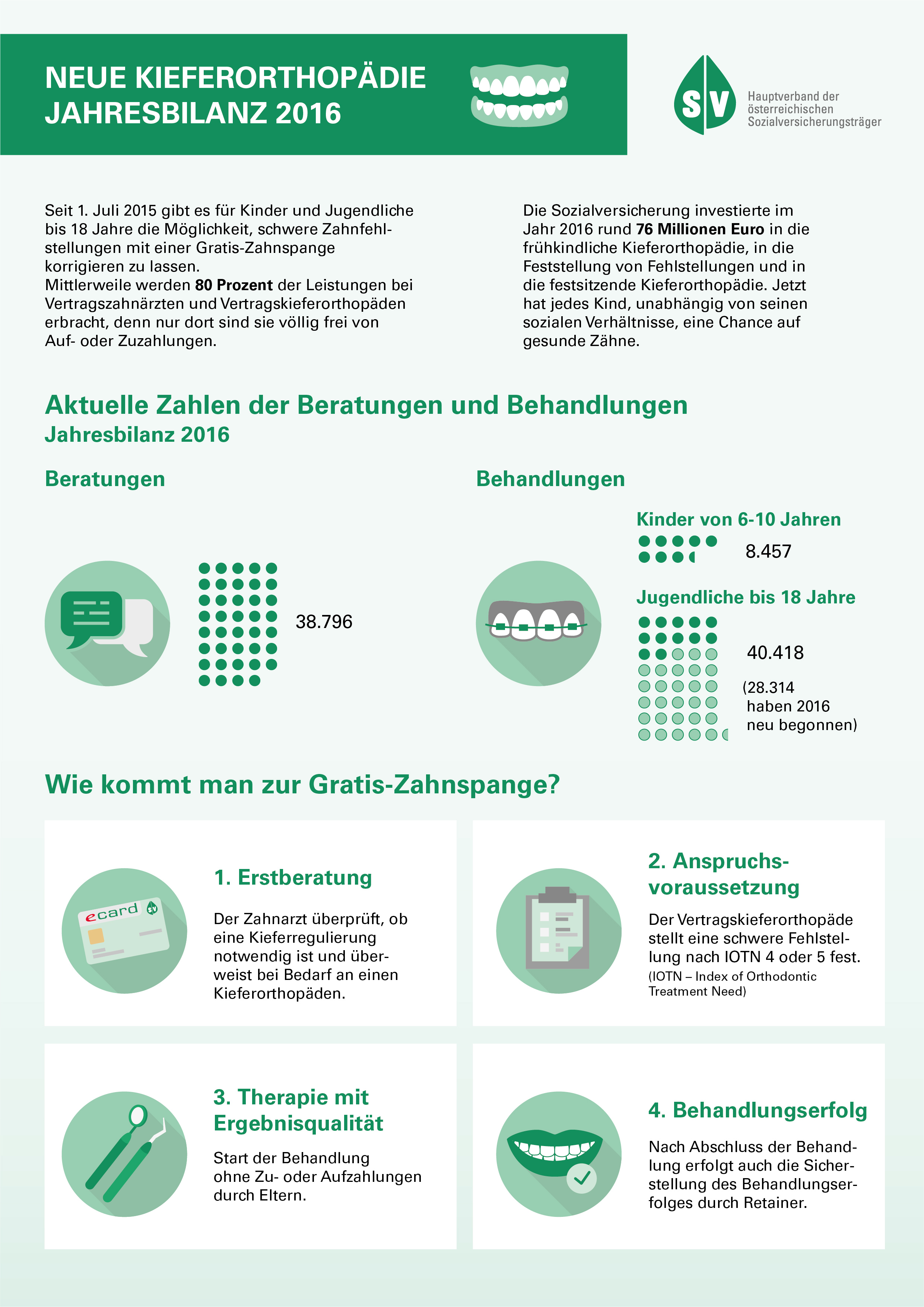 Gemeinsam mit der Österreichischen Zahnärztekammer wurde sichergestellt, dass jeder bzw. jede, der oder die eine entsprechende Behandlung einer Fehlstellung benötigt, diese auch erhält.