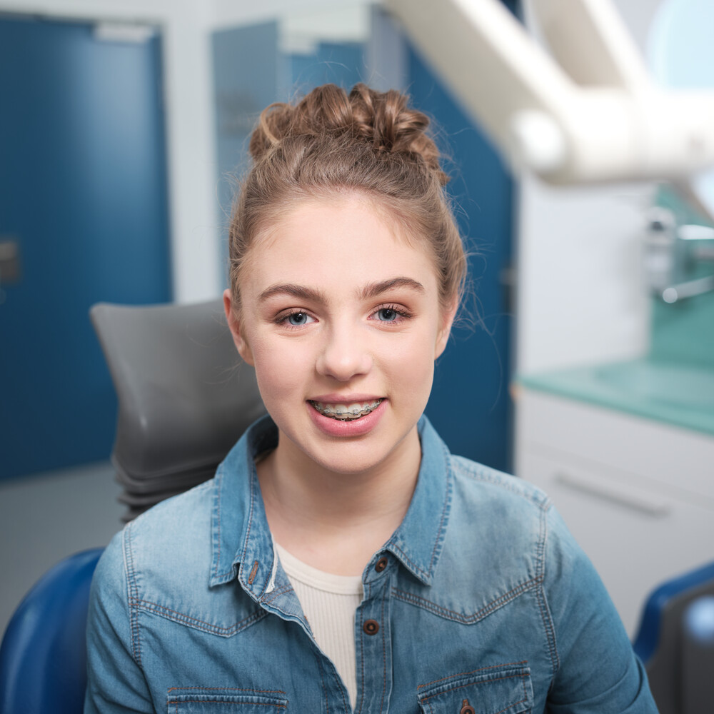 - Jugendliche von etwa 12 bis zum vollendeten 18. Lebensjahr erhalten eine festsitzende Zahnspange.